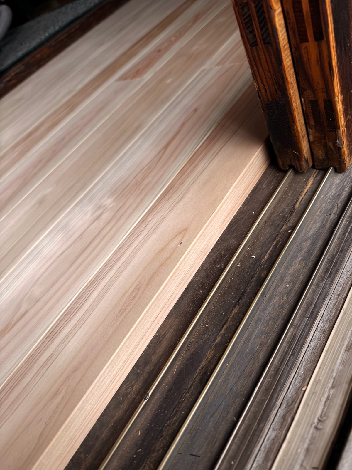 現状の雰囲気に合わせて内装材を選びました。トイレと洗面化粧台の床は段差解消もしております。
